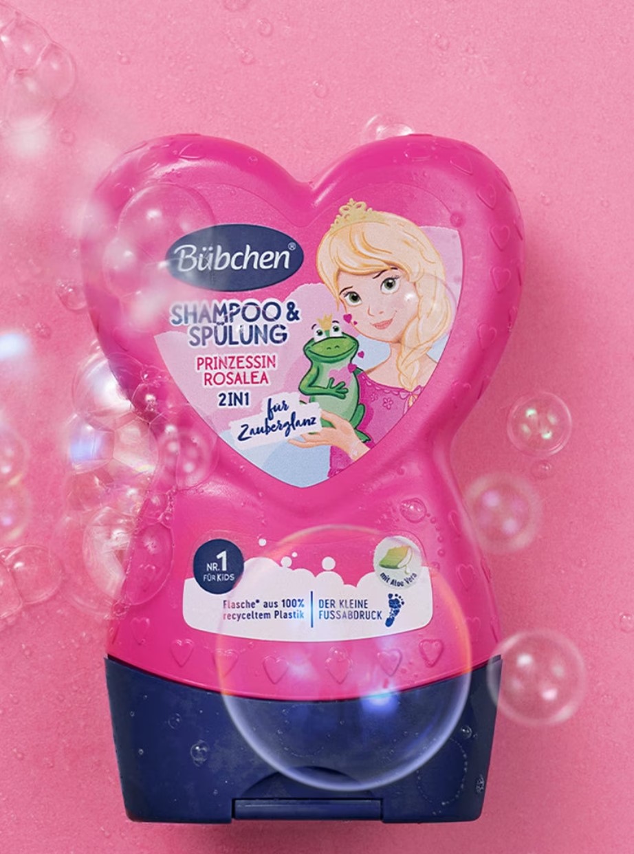 Bübchen Kids Shampoo & Spülung 2in1 Prinzessin Rosalea ist speziell für Kinder entwickelt und bietet eine sanfte Reinigung und Pflege für empfindliches Kinderhaar. Die 2in1-Formel kombiniert Shampoo und Spülung, um das Haar gründlich zu reinigen und gleichzeitig leicht kämmbar zu machen. Der zarte Duft von Prinzessin Rosalea macht das Haarewaschen zu einem angenehmen Erlebnis für die Kleinen.