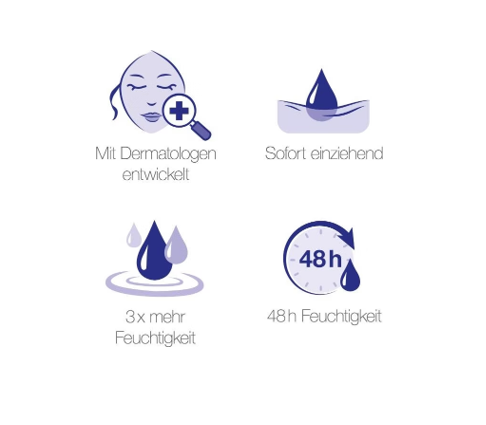 - Zieht schnell ein und spendet bis zu 48 Stunden Feuchtigkeit.
