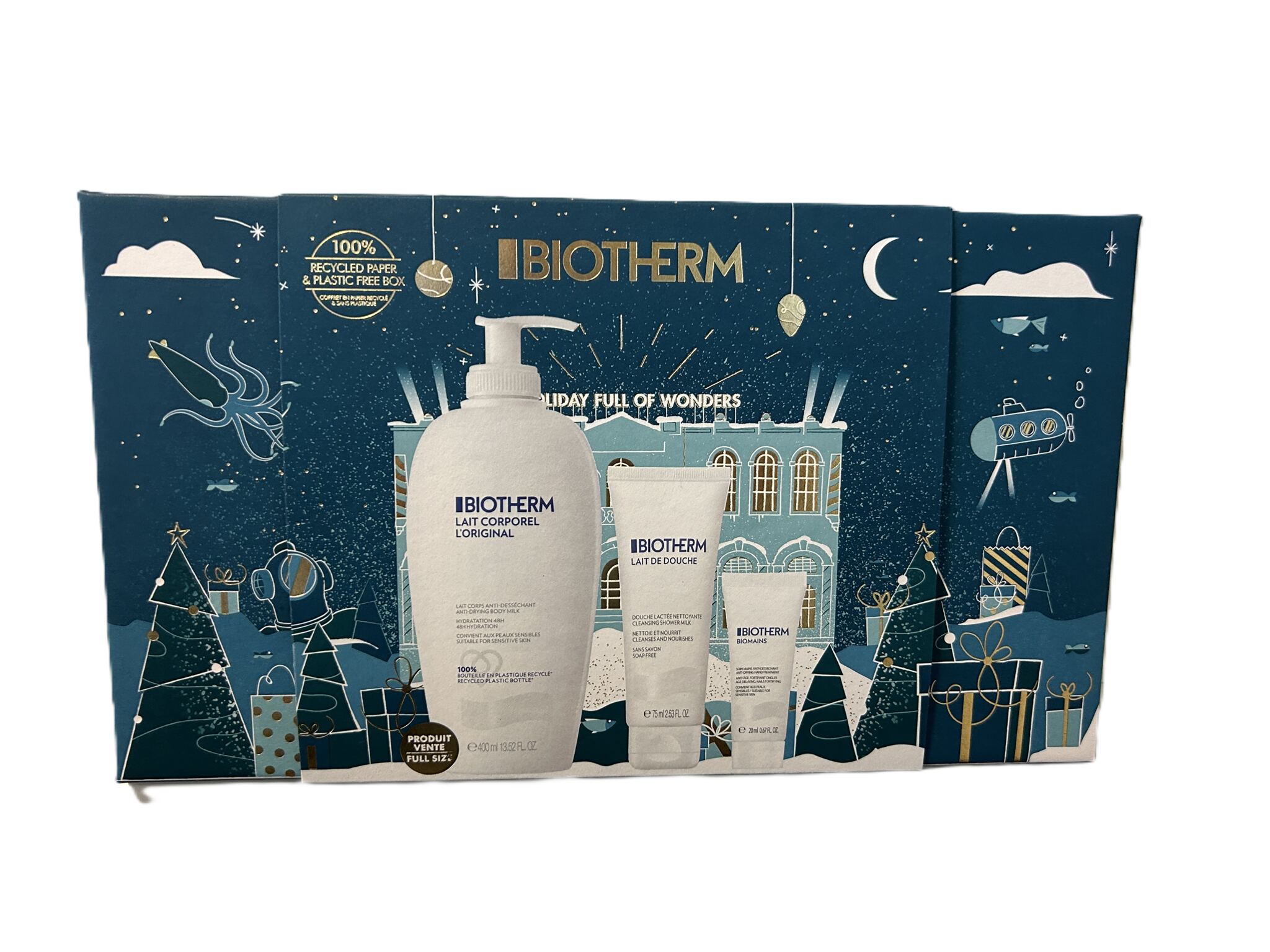 Das Set Biotherm Lait Corporel 3-teilig besteht aus hochwertigen Pflegeprodukten, die speziell entwickelt wurden, um die Haut intensiv zu pflegen und mit Feuchtigkeit zu versorgen. Dieses Set enthält: