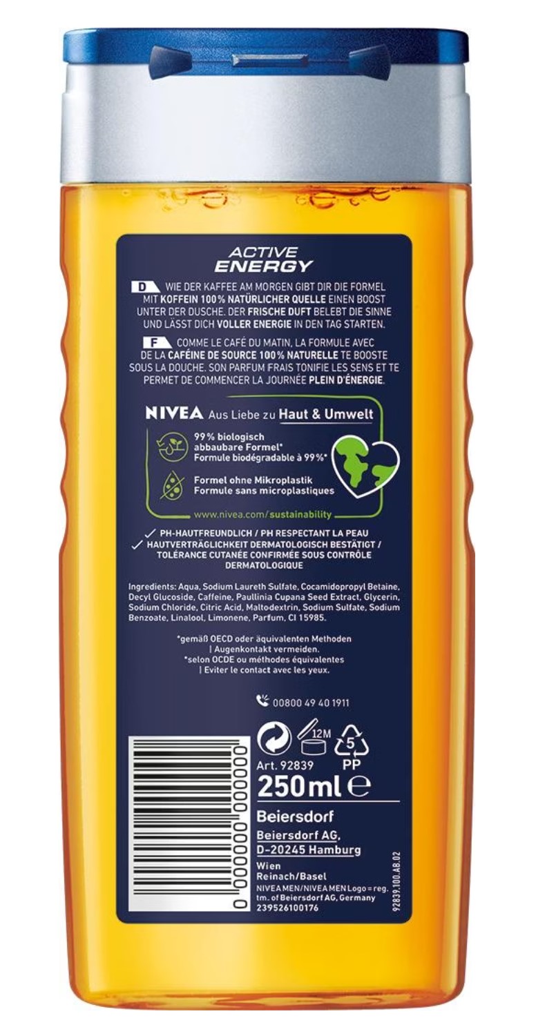 Nivea Men Duschgel 3 in1 Active Energy Koffein 250ml