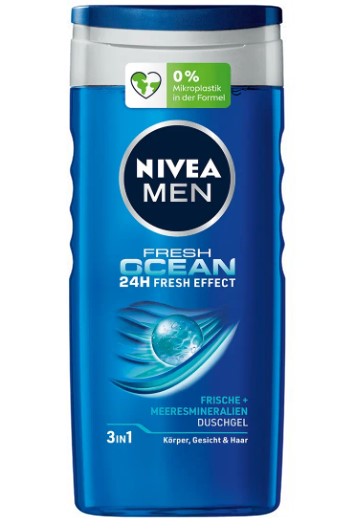 Nivea Men Duschgel 3 in 1 Fresh Ocean mit Meeresmineralien bietet eine erfrischende Reinigung für Körper, Gesicht und Haar. Die Formel ist speziell auf die Bedürfnisse von Männerhaut abgestimmt und sorgt für ein langanhaltendes Frischegefühl. Der belebende Duft nach frischem Ozean verleiht ein Gefühl von Energie und Vitalität. Die Hautverträglichkeit ist dermatologisch bestätigt.