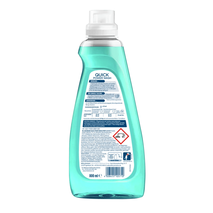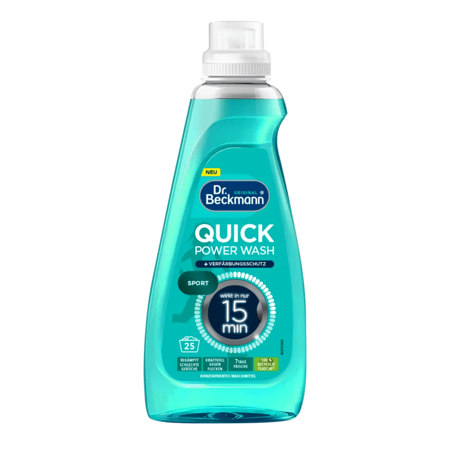 Das Dr. Beckmann Sport Quick Power Wash wurde speziell für Sport- und Funktionskleidung entwickelt. Die leistungsstarke Formel entfernt Schweißgerüche und tiefsitzenden Schmutz zuverlässig – selbst bei kurzen Waschprogrammen und niedrigen Temperaturen.